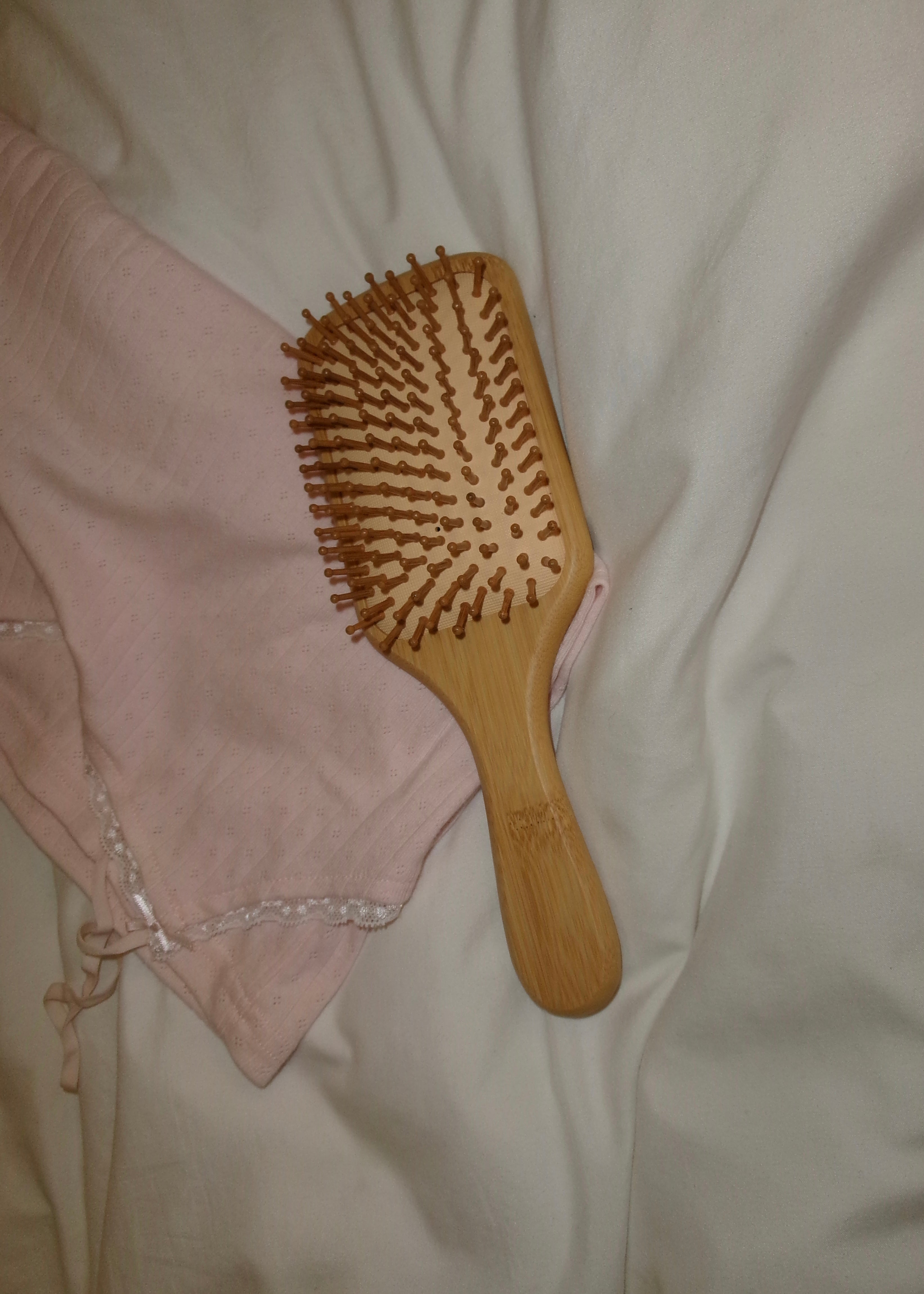 End your night with a soothing moment of self-care using your bamboo hairbrush. Feel the day's stress melt away, leaving your strands smooth and tangle-free.