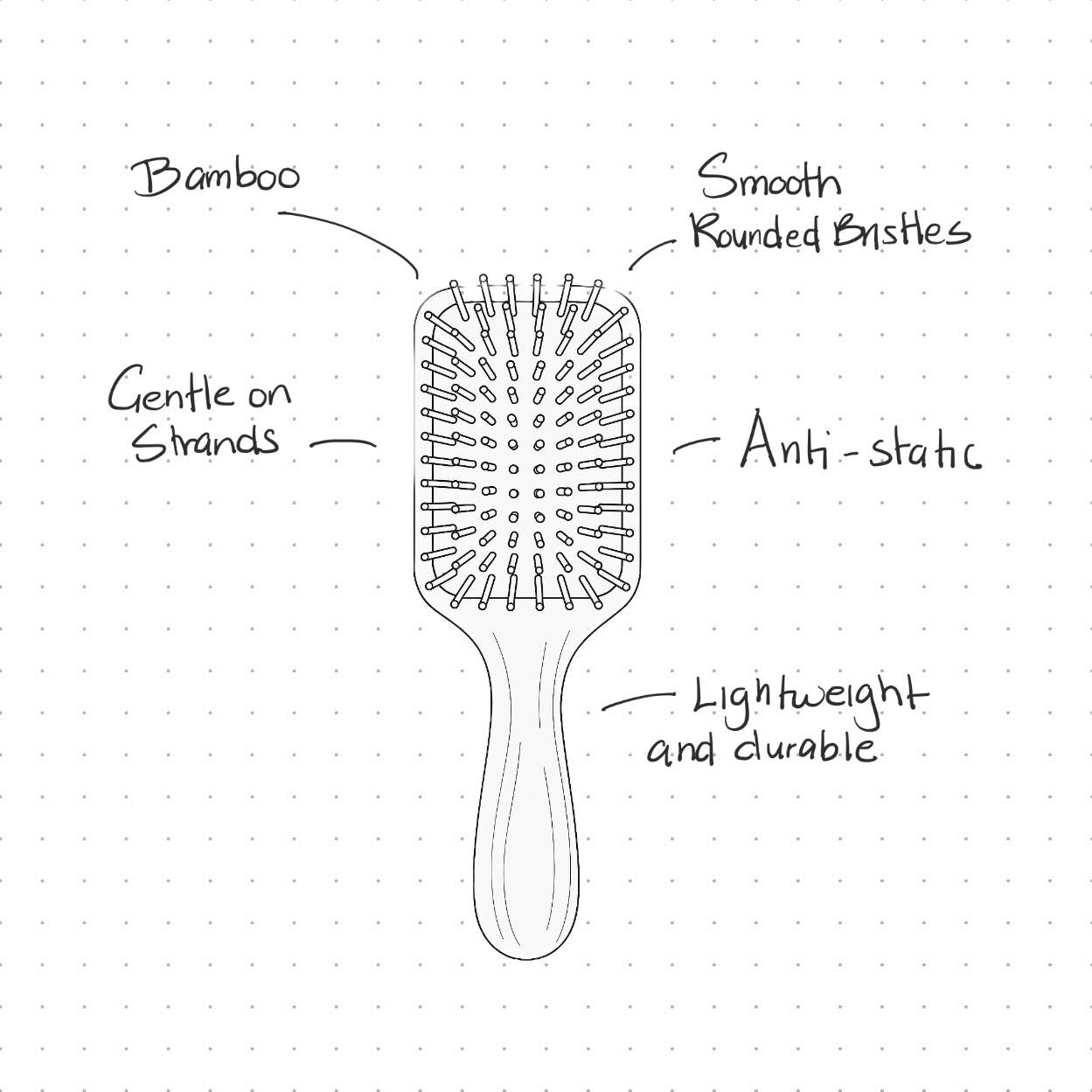 Our bamboo brush gently detangles without breakage, reduces frizz, and helps distribute your scalp’s natural oils from root to tip—boosting shine and strength with every stroke.